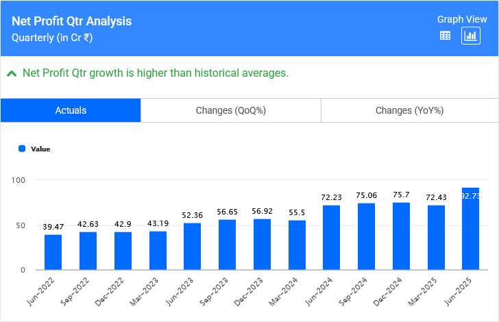 Anand Rathi Wealth Ltd. Jun-2025 Quarterly Net Profit is Rs 93 Cr which is growth of 28.4% YoY.