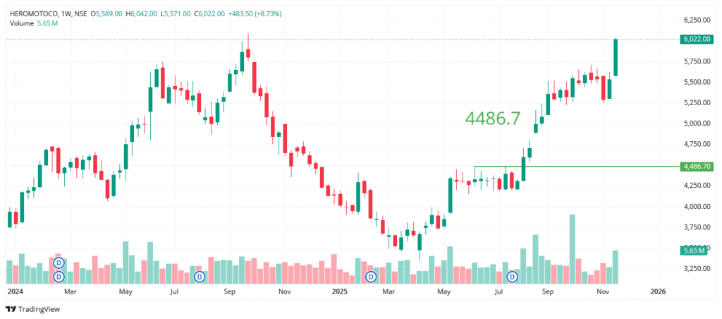 A significant block trade of 93,053 Hero MotoCorp shares, valued at Rs. 54.06 crores, was executed on the NSE at Rs. 5,810.00 per share.