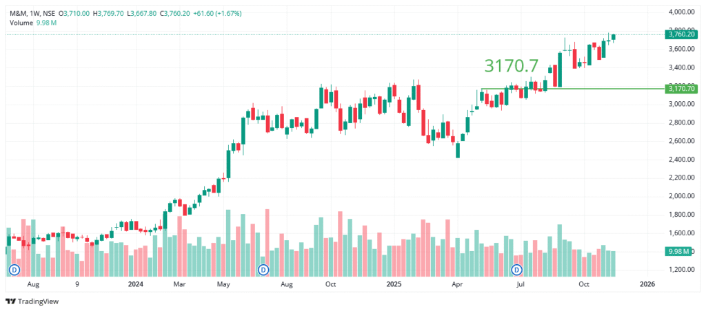 This block deal indicates substantial institutional or bulk investor activity in M&M’s stock.