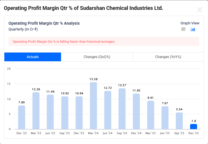Sudarshan Chemical Operating Margin Q3 FY 26