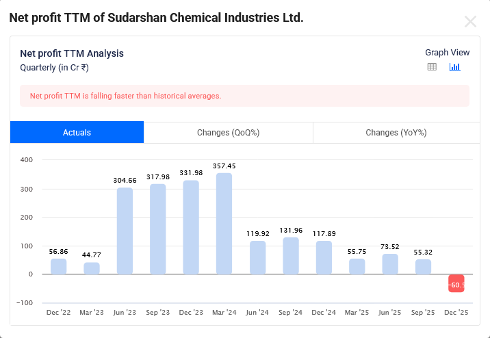 Sudarshan Chemical Net Profit TTM