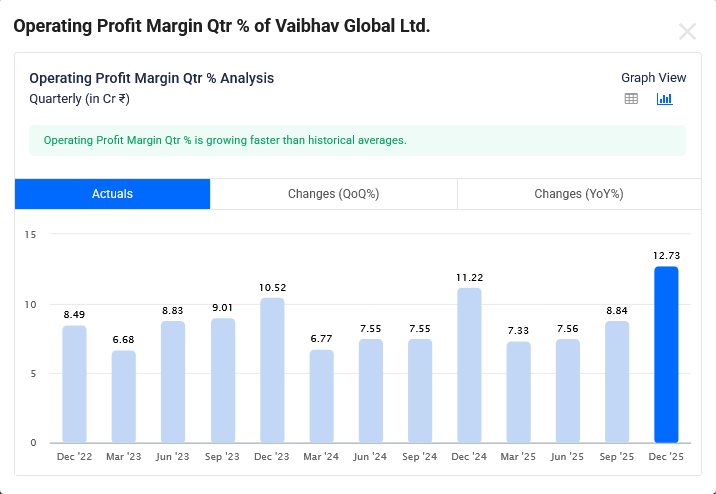 Vaibhav Global Operating Margin Q3 FY 26