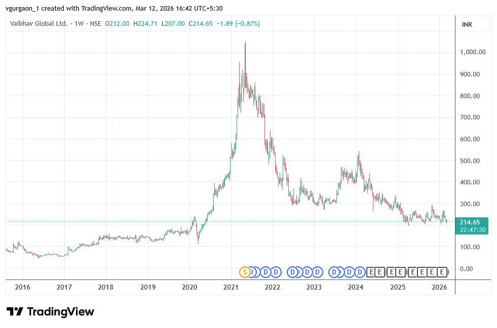 The stock touched an all time high of Rs. 1050 in May 2021 and now it is trading at Rs. 214, down about 79% from it’s all time high.