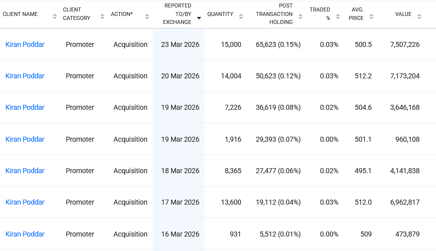 Since March 16, 2026, the promoter group at Mayur Uniquoters—specifically Kiran Poddar—has been on a buying spree.