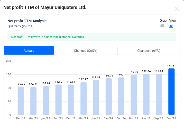 Mayur Uniquoters Dec-2025 Quarterly Net Profit is Rs 51 Cr which is growth of 66.0% YoY.